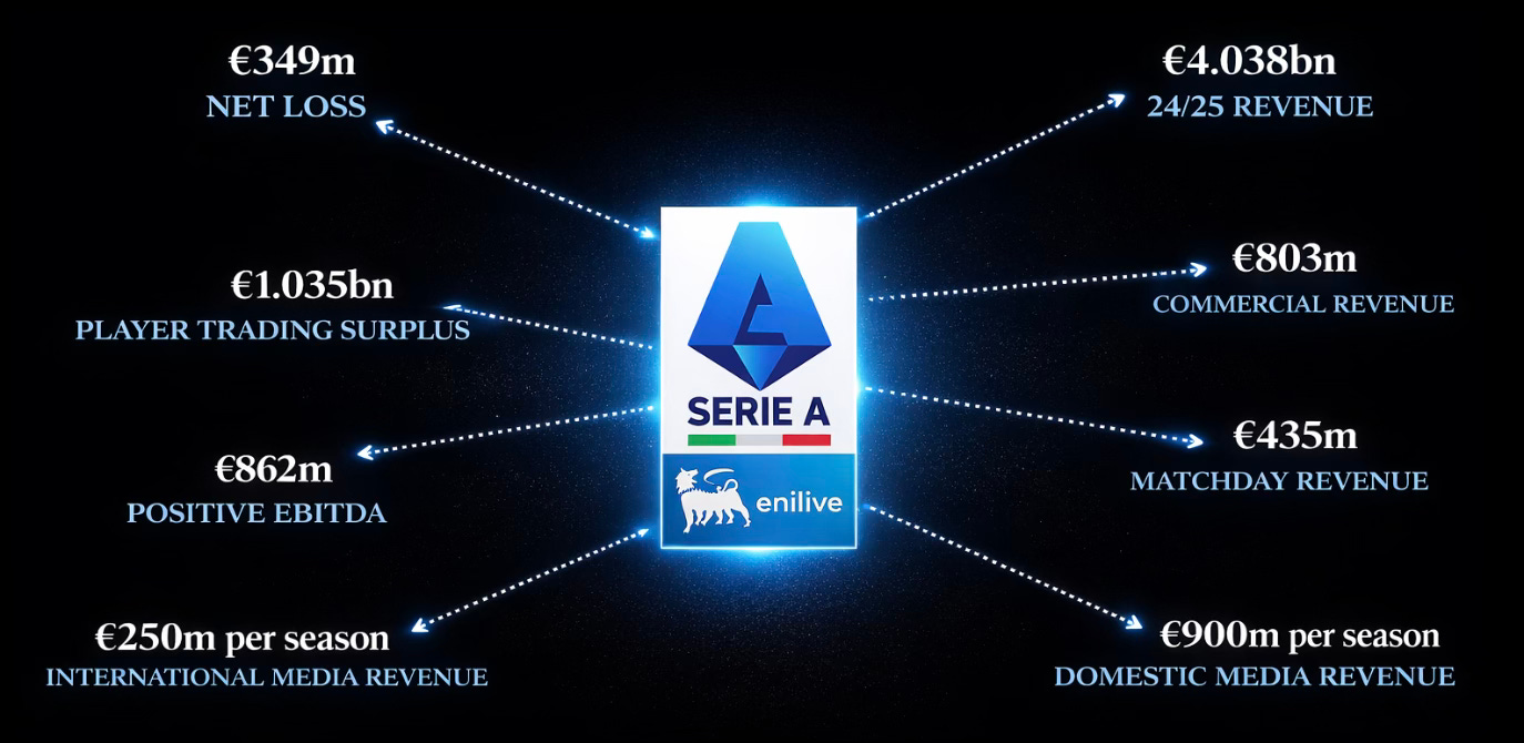 The league still had the history. The global fanbases. The iconic clubs - Juventus, AC Milan, Inter Milan, Napoli. But financially, it had stalled below a psychological ceiling: €4 billion in aggregate annual revenue.